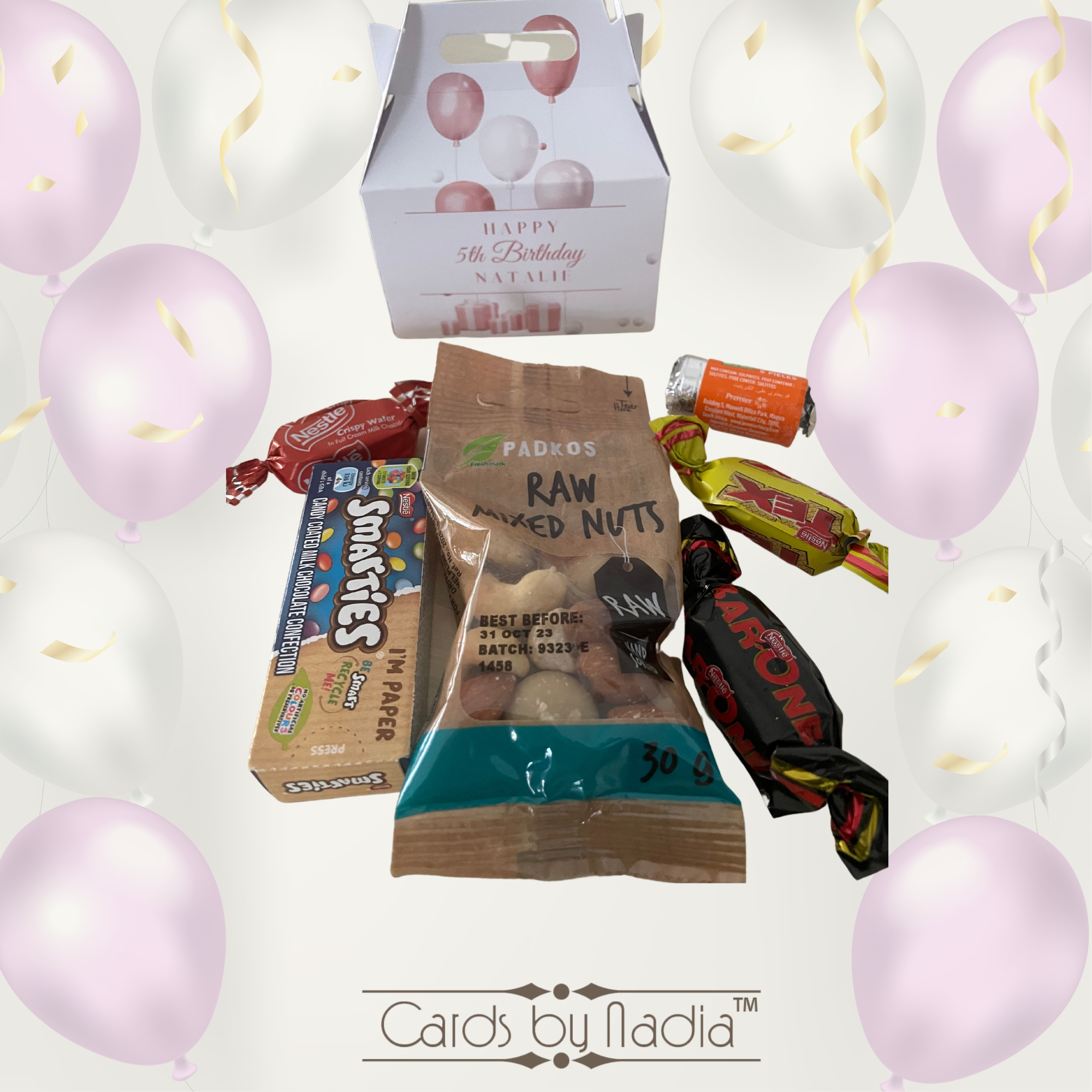Give your kid’s party a unique touch with our personalized mini party boxes! These mini party boxes can be filled with high-quality treats from passion chocolates to mini boxes of smarties, and an option to add in 30gm woolies or padkos nuts, dried fruit or biltong to suit your guests’ preferences. You can either fill the boxes yourself or order them already filled. Price of the box exclude content.