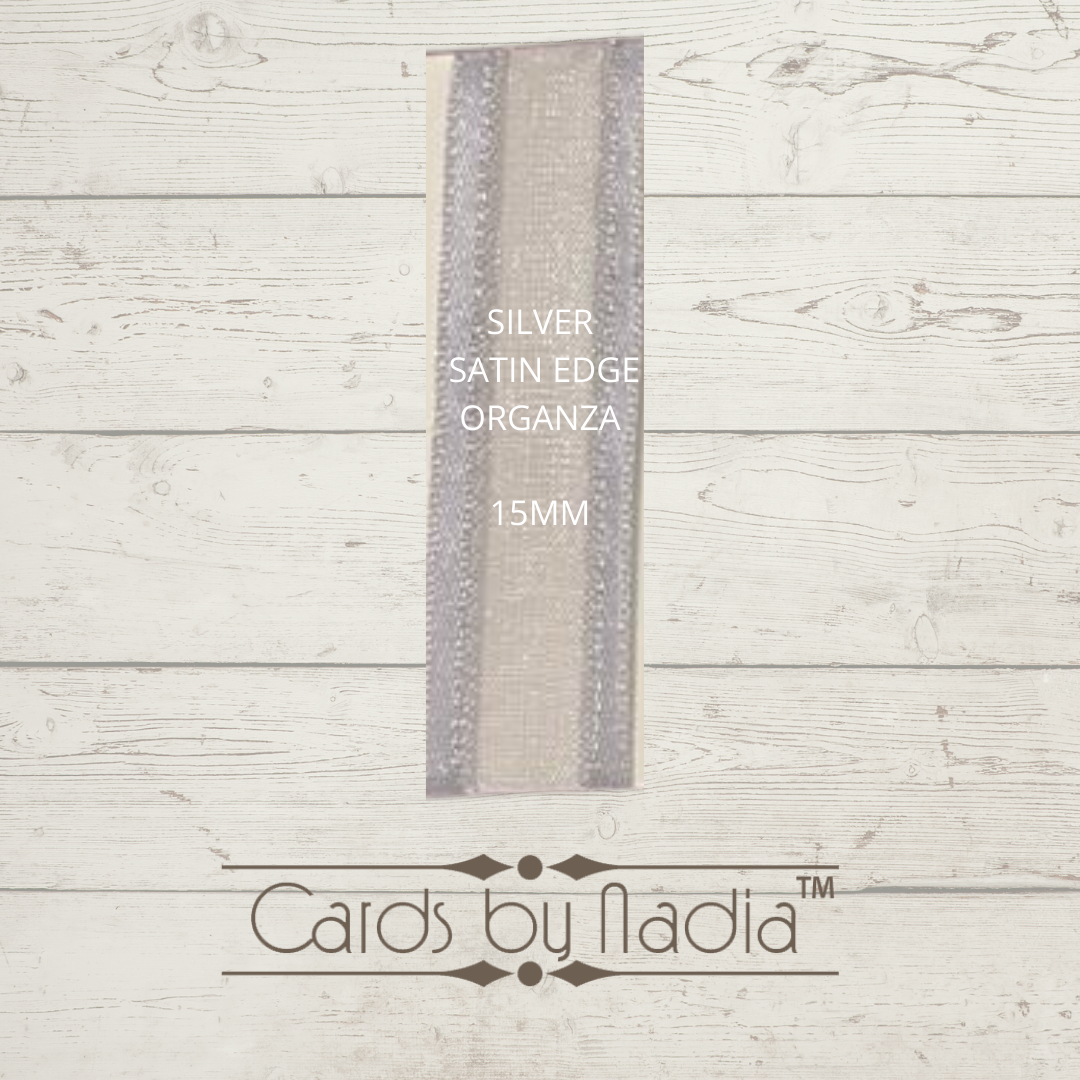 Satin edge organza in the colour Silver. Width of ribbon is 15mm.