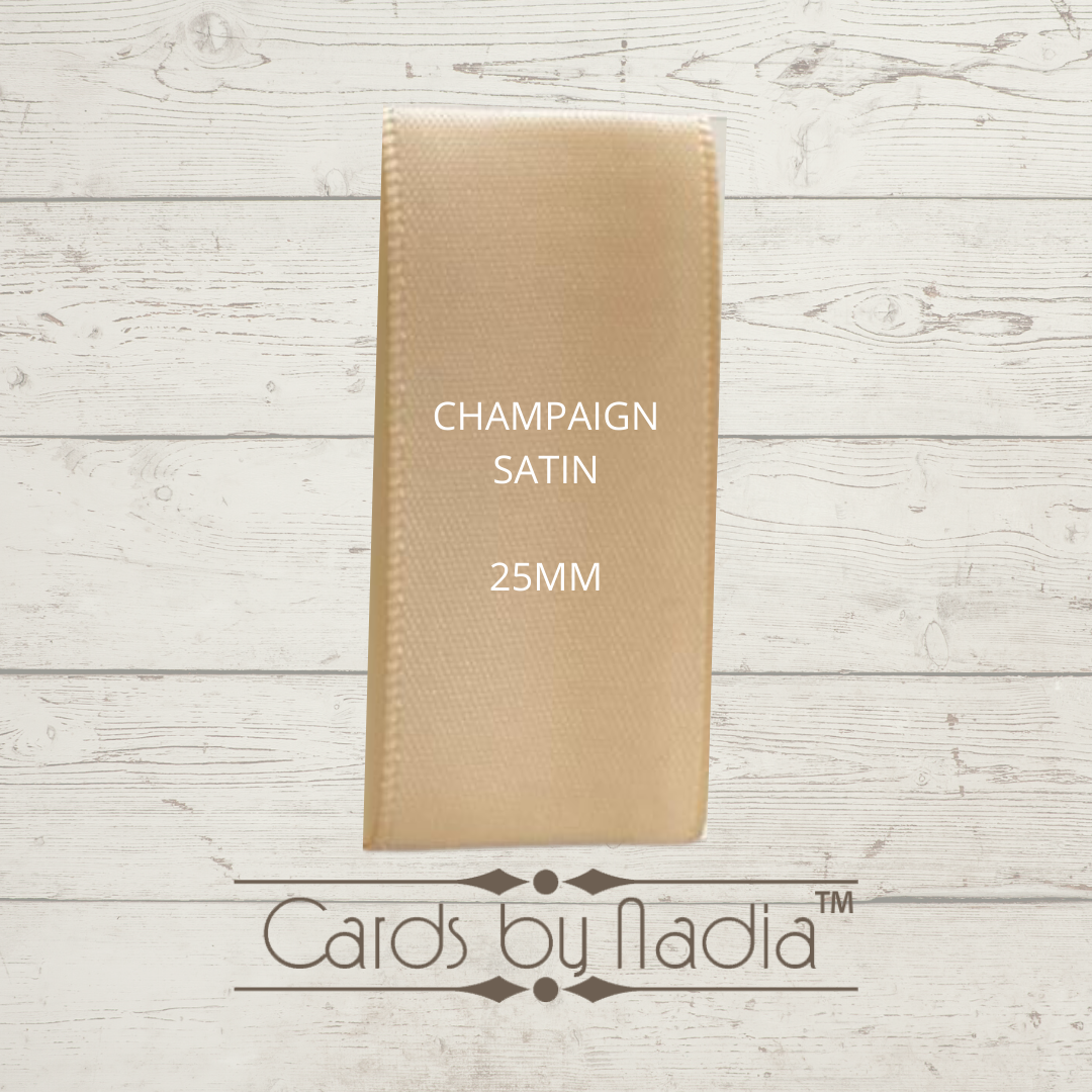 Satin ribbon in the colour Champaign. Width of ribbon is 25mm.