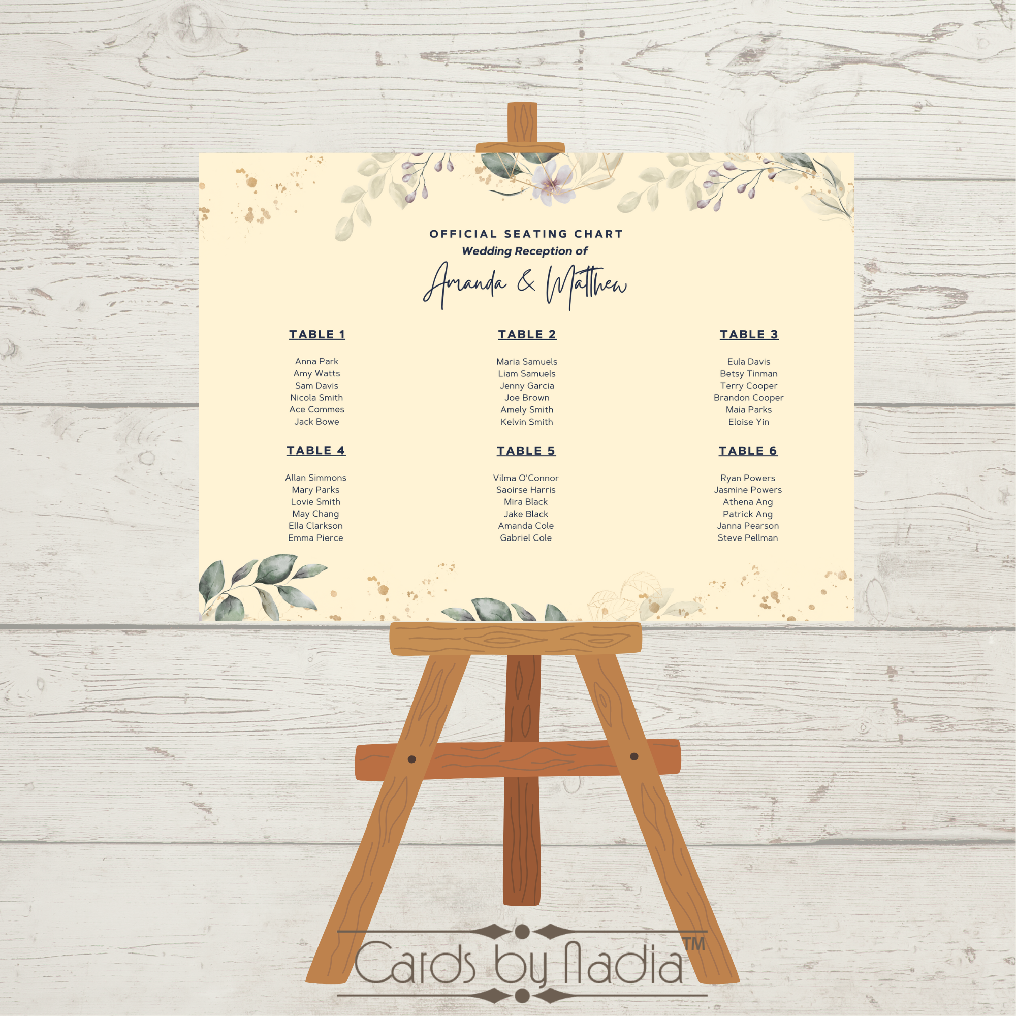 Looking for a way to make your guests feel special on your big day? Our seating charts are the perfect way to do just that! Whether you’re looking for a simple and sleek design or something a little more elaborate, we have a chart that’s perfect for you. Plus, with so many different colors and styles to choose from, you’re sure to find something that matches your theme perfectly.  Our seating plan comes in both size A2 and A1.  The easel is also available to purchase or rent from us. So why wait? Add a touch of luxury to your special day with our seating charts today!
