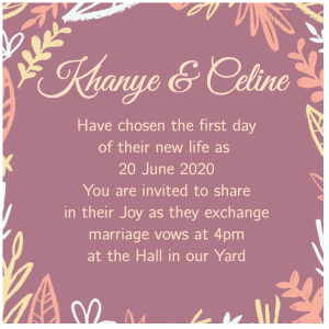 Square – 13cmx13cm designs Design Category Uncategorized Save the Date Postcard Blank Covers, Pockets and Envelopes Plain Covers & Pockets Embossed Covers Pillow Box Covers Weddings Invitations Printed invite + Cover / Envelope Invitation Cards Table stationery Menus Favour boxes and tags Seating Plan Paper & Board Ribbon & Embellishment Kids Party Birthdays & Events Other Thank you pillow box DIY Sets Printed T shirts Apparel Designer Products Custom T-shirt Personalised Bridal T-shirts DIY Kit Lazer Cut - Silver Two Fold Invitation DIY Kit Fancy Envelope - Slim Pocket Invitation DIY Kit Lazer Cut - Triangle Point-Folded with Pocket DIY Kit Lazer Cut - Grey Fully Closed Invitation DIY Kit Lazer Cut - Two Fold Fold Invitation DIY Kit Fancy Envelope - Heart Fold Invitation DIY Kit Fancy Envelope - Wallet Fold Invitation DIY Kit Fancy Envelope - Four Fold Invitation DIY Kit Lazer Cut - Two Fold Invitation DIY Kit Embossed - Square Two Folded with Ribbon DIY Kit Embossed - Triangle Point Folded Invitation with Ribbon DIY Kit Embossed - Triangle Two Fold with Ribbon DIY Kit Lazer Cut - Rose Gold Two Fold Invitation DIY Kit Lazer Cut - Gold Glitter Two Fold Invitation DIY Kit Embossed - Triangle Two-Folded with Ribbon DIY Kit Embossed - Square Point-Folded with Ribbon DIY Kit Embossed - Square Two Fold DIY Kit Embossed - Square point fold Post card 14.8cm x 10.5cm A5 21cm X 14.8cm Landscape A5 14.8cm x 21cm Postcard Portrait 10.5cm x 14.8cm Square - 13cmx13cm Square - 15.5cmx15.5cm See All Wishlist plus-circle Design or Upload file 71 Templates 123>≫ close